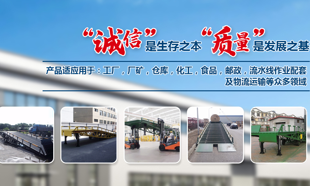 隨著國(guó)內(nèi)及國(guó)際市場(chǎng)需求的不斷擴(kuò)大,公司也在不斷引進(jìn)國(guó)內(nèi)外的先進(jìn)技術(shù)來(lái)充實(shí)自身。公司先后設(shè)計(jì)研發(fā)出了,大小型貨車(chē)配裝的:汽車(chē)液壓尾板,叉車(chē)裝卸貨用的:移動(dòng)式登車(chē)橋;庫(kù)房外貨臺(tái)配裝的:固定式液壓升降平臺(tái)(貨臺(tái)高度液壓調(diào)節(jié)板);庫(kù)房?jī)?nèi)外高層輸送貨物:導(dǎo)軌式升降貨梯,液壓升降平臺(tái),旋轉(zhuǎn)液壓升降臺(tái),及百?lài)嵨淮笮蜕蹬_(tái),等多種的先進(jìn)裝卸裝備,適應(yīng)用于:工廠,廠礦,倉(cāng)庫(kù),化工,食品,郵政,流水線作業(yè)配套及物流運(yùn)輸?shù)缺姸囝I(lǐng)域。